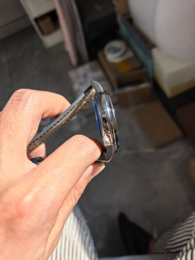 文字盤のグラデーション: 本物のブルー文字盤は、特定の角度から見ると黒く見える見事なグラデーション効果を持っていますが、このレプリカではその「黒く変化する効果」があまり明確に出ません。
