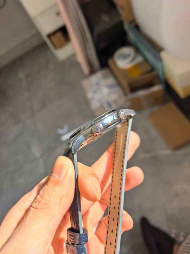 重量の違い: 本物のケースはプラチナで作られているため非常に重厚感がありますが、レプリカはステンレスベースのため、手に持った際の重量に明確な違いが生じます。